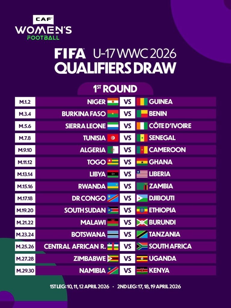 The draw for the FIFA U-17 Women’s World Cup Morocco 2026 African Qualifiers