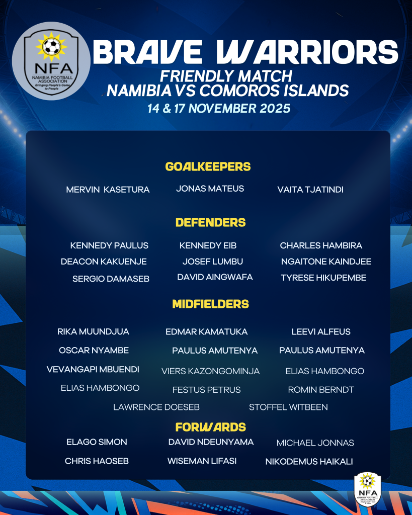 7 November 2025 – Brave Warriors Head Coach,Collin Benjamin and his team has named a 32- preliminary squad for a friendly match against Comoros.The Warriors will be coached by John Sikerete while Marley Ngarizemo serves as an assistant.